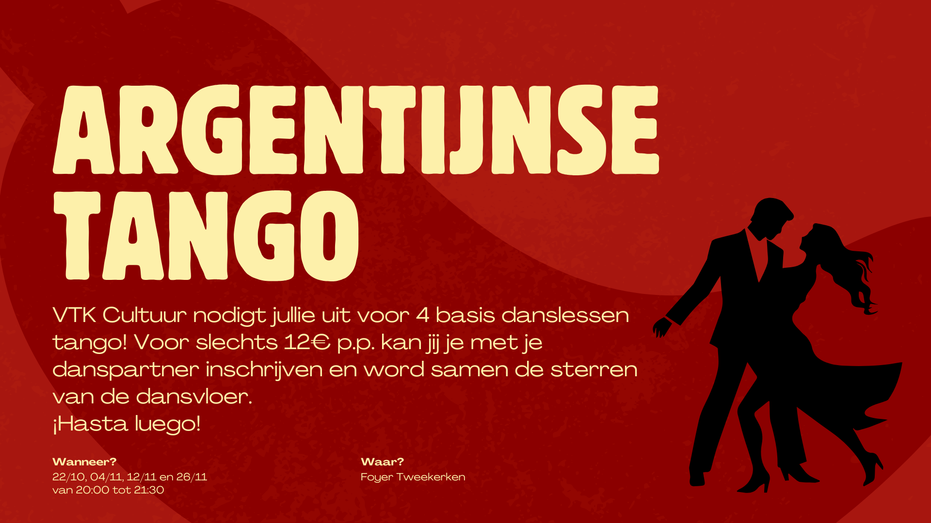 Gooi die dansbeentjes maar eens goed los, want cultuur heeft ook dit jaar een nieuwe dans uitgekozen om jullie aan te leren. En wat gaat het worden? Tromgeroffel..... de Argentijnse TANGO!